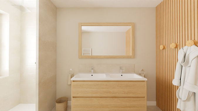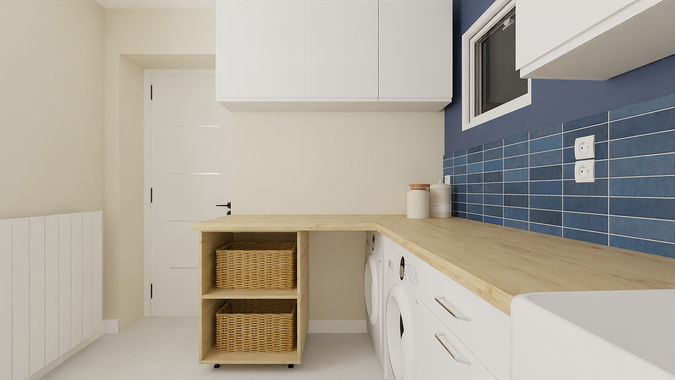 Au rez-de-chaussée, nous avons gardé l'emplacement de chacune des pièces existantes, la cloison entre la cuisine et la pièce de vie a été abattue pour apporter une sensation de grandeur et de volume. Nous avons modernisé les espaces avec un nouveau sol, une reprise des murs ainsi qu'une décoration harmonieuse.